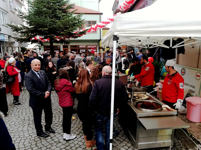 Seyyar lokma aracımızla etkinlik alanına geliyoruz. Hijyenik koşullarda lokma dökümü yapılıyor ve sıcak şekilde misafirlere ikram ediliyor.